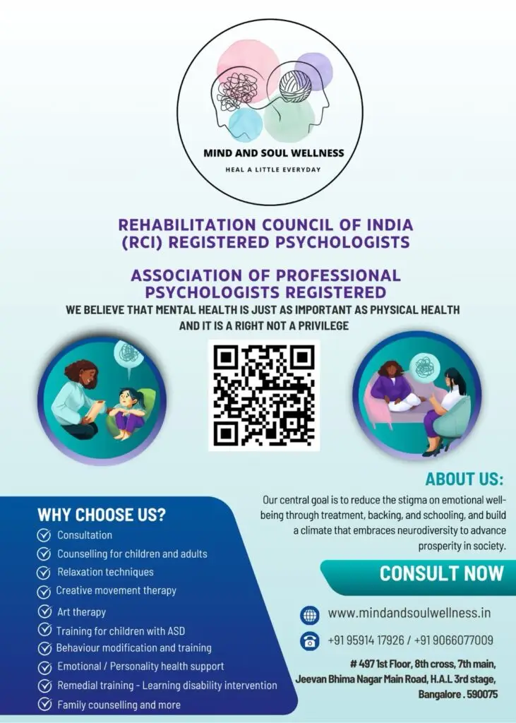 Mind and Soul-wellness offers a wide range of services including clinical assessments for adults and children, individual psychotherapy, couples and family therapy, behavioral therapy, and remedial training for our therapy clients. Ensuring a secure and welcoming atmosphere for all those requiring mental health services is a top priority to us.
